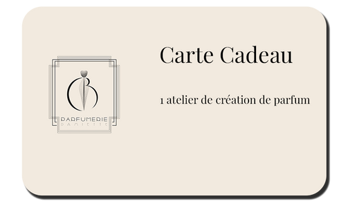 Offrez une carte cadeau pour un atelier de création parfum sur-mesure ! Votre carte cadeau vous sera envoyée par mail avec un code. Ce dernier vous sera demandé lors de la réservation de votre atelier.